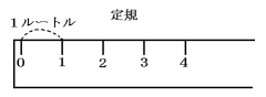 次の図のような、1辺の長さが1cmの正方形の対角線の長さを1ルートルと呼ぶことに