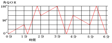 いてみましょう。角QORの大きさの変化は次のグラフのようになります。