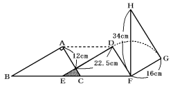図のように直角三角形ABCを平行に移動した後で、点Fを中心に90°回転させまし