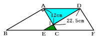 (3) 辺DEが動いたあとの図形は次図のアとイを組み合わせた部分(緑)です。
