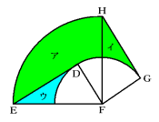 イの部分はウの部分(青)と合同なので、面積をアとウの和として求めることができ