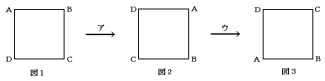 図1の正方形にアを行うと図2になり,さらにウを行うと図3になります。 アを行い,つづいてウを行うことをア○ウで表すことにします。 ア○ウは,はじめの図1の正方形にカを行ったことと同じことになるので,このことを