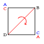 イ 対角線の交点を中心に時計まわりに180度回転 ウ 左上から右下への対角線を軸として対称に移動