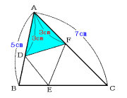 三角形ADFと三角形ABCでは、角Aが共通なのでその面積比は、