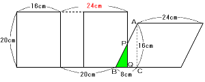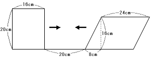2つのものが同時に動く場合には一方を固定して考える必要があります。平行四辺形を動 かさないとすると,長方形は右向きに毎秒3cmの速さで動くことになります。