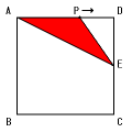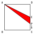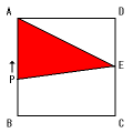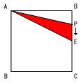 点Pが辺AD上を動くとき、三角形APEはAPを底辺、EDを高さとする三角形と 考えられます。この間は面積が一定の割合で増え続け、最大になるのは点Pが頂点D に来るときです。