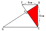 図の赤い三角形JCDは三角形DCEと相似で、三角形CGDとも相似です。