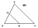 [1] 図1で,点Q,RはそれぞれPS,PTの真ん中の点です。