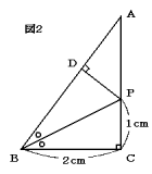 [2] 図2は,BCの長さが2cmの直角三角形ABCで,BPは角Bをちょうど二等分しています。