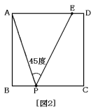 (5) [図2]のように,角APEの大きさが45度になるように点Eをとり,三角形APEの面積が40cm2のとき,BP:PCをもっとも簡単な整数の比で表しなさい。