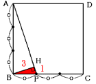 正方形ABCDの辺BCを何等分かし,Bにもっとも近い点をPとします。BからAPに垂直な線をひき,APとの交点をH,AP=10cmとするとき,次の問いに答えなさい。