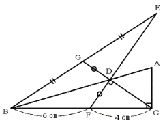 点Fは辺BC上にあり,BF=6cm,FC=4cmです。点Fを通る直線と,点Cを通る直線が,辺AB上