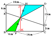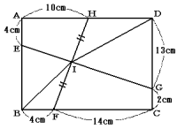 次の図のように長方形ABCDがあり,E,F,G,Hはそれぞれ辺の上の点です。直線EGと直線FHの交わった点をIとすると,IはFHを2等分する点になりました。