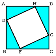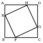 り,結んだものです。内側の正方形EFGHの面積を考えて,EFの長さを求めなさい。