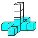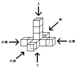 このような立体の表面積は,各面に垂直な6方向から見た正方形の個数を数えて考えるのが