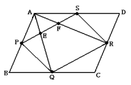 次の図のような平行四辺形ABCDがあります。この各辺のまん中にそれぞれ点P,Q,R,Sをとり,これらを結ぶと平行四辺形PQRSができます。PSがAQ,ARと交わった点をそれぞれE,FとするとPE:ES=1:2となりました。