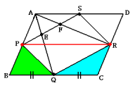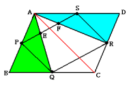 三角形AQRは平行四辺形ABCDから3つの三角形ABQ,ADR,CQRを除いて考えることができます。