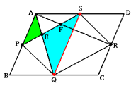 線分SQと辺ABは平行なので,三角形AEPと三角形QESは相似です。