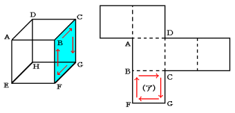 辺BCを含む面なので,展開図のアの面は面BCGFです。アの面に頂点名