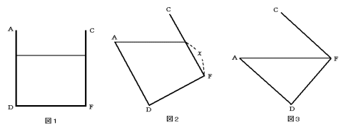 (3) 図3のとき,こぼれた水の量は20cm3でした。図2のときのxの長さは何cmですか。
