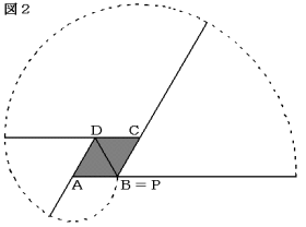 [2] 点Pがはじめの位置から点Bに達するまで,毎秒1cmの速さで動くとき,糸が通過する部分の面積